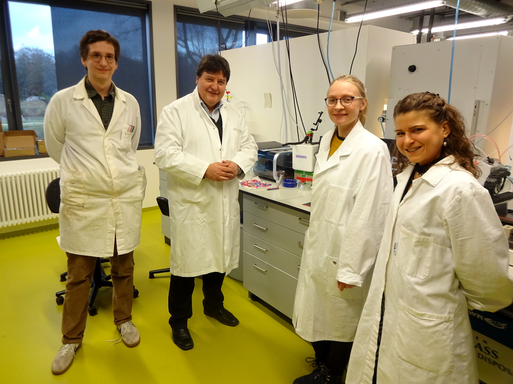 Alina Weizel’s work is also a collaboration with Prof. Aldo Boccaccini and Thomas Distler from the Chair of Biomaterials (WW7) at FAU (shown on the photos) within the SFB/CRC 1270 ‘ELAINE‘ (Electrically Active Implants) and the Emerging Fields Initiative (EFI) by the FAU ‘Novel Biopolymer Hydrogels for Understanding Complex Tissue Biomechanics‘.