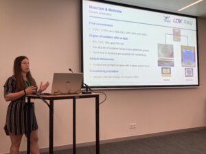 It was great to see the recent advances in the different fields of biomechanics and to meet researchers and companies active in the interdisciplinary field. Jessica Faber, Manuel Kainz (Institute of Biomechanics, TU Graz) and Silvia Budday presented our newest results on tissue-mimicking hydrogels and region-specific parameters for full brain simulations.