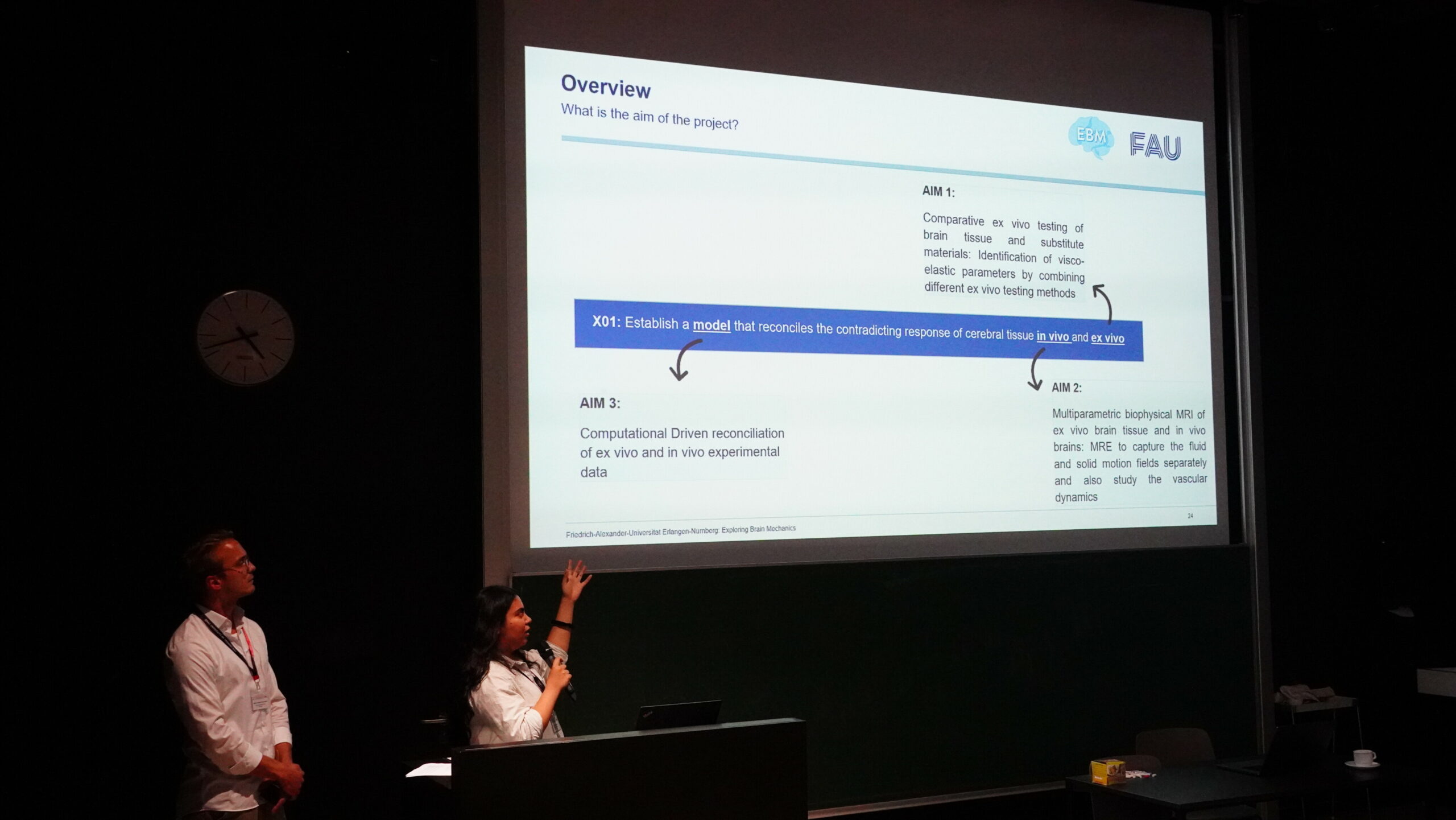 The lectures were followed by interesting discussions on concepts and future research. In addition, members of the CRC 1540: Exploring Brain Mechanics Yashasvi Verma (from the Institute of Applied Mechanics), and Oskar Neumann (from the institute of Continuum Mechanics and Biomechanics), presented their respective projects to the community. They also provided an insightful overview of the CRC’s overarching mission, aimed at fostering potential collaborations with fellow researchers worldwide.