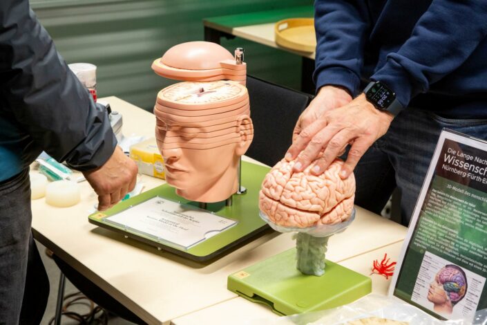 On October 21, 2023, the Collaborative Research Center CRC 1540 “Exploring Brain Mechanics” (EBM) participated in the Long Night of the Sciences in the Erlangen, Fürth, and Nürnberg region. In a captivating presentation, EBM opened its doors to the interested public, providing insights into various facets of its research. The event spanned across five locations: