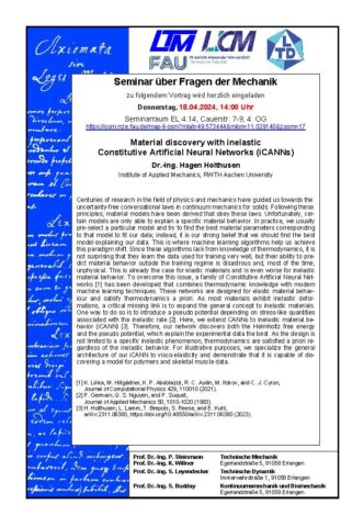 Seminars on Data-Driven Modeling hosted by Dr. Kevin Linka and Dr. Hagen Holthusen (RWTH Aachen)